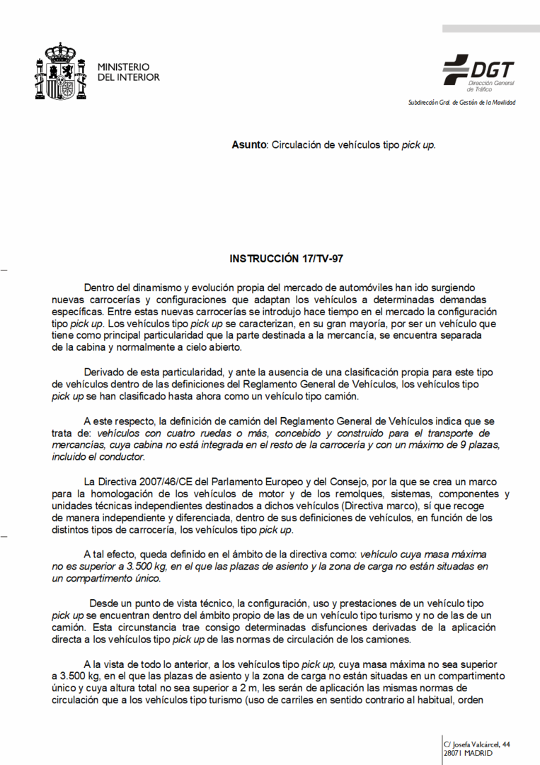 Nueva normativa de circulación sobre vehiculos tipo Pick Up.